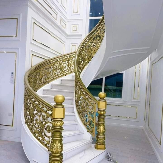 Cầu thang nhôm đúc - 07 với hoa văn tinh xảo, chịu lực cao, chống oxy hóa, mang đến không gian sang trọng, hiện đại và an toàn tuyệt đối cho biệt thự, nhà phố và công trình cao cấp.